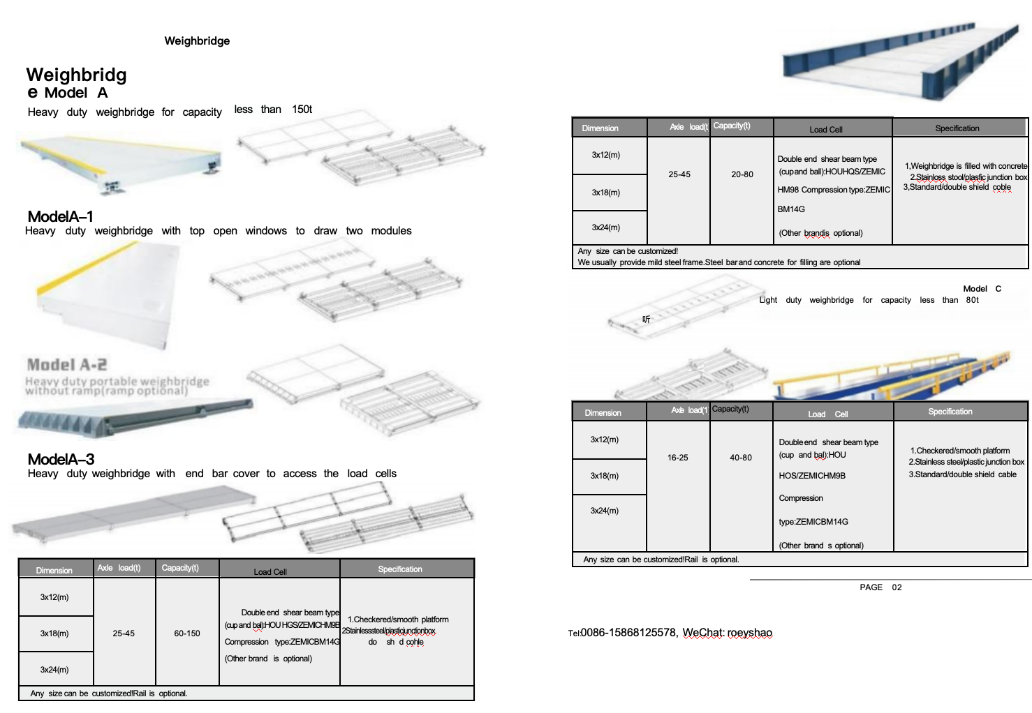 Dimension:3x12m, 3x18m, 3x24m, Capicity: 20-80ton, 40-80ton, 60-150ton. Load cells assembled: double shear beam load cells in Alloy steel